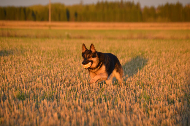 Mainitsin tuolla alussa mun pienestä äksidentistä. Pelattiin tosiaan Viskin kanssa sunnuntaina vähän jalkapalloa, ja ainakin kaikki sakemanni ihmiset varmaan tietää kuinka hulluina nuo saksalaiset on pallojen perään. Ja siinä sitten vahingossa Viskin hampaat tarras pallon sijaan mun sääreen.... *auts* Ensimmäisenä tietenkin riensin katsomaan, että onhan Viskin hampaat kunnossa, mun jalasta viis. Mutta taisi se jalkakin vähän yhteenotosta nokkiinsa ottaa. Puru kohta vuosi verta aika kovin ja nostatti sellaisen lähes tennispallon kokoisen patin. Ja oli muuten sen verran kipeä, että ei sillä jalalla paljoa astua tarvinnut. Mutta tänään jo paljon parempi, jos ei oteta lukuun kosketusarkuutta ja turvotusta. Mutta mielessä kävi vaan, että millaista jälkeä tuollainen koira saa aikaiseksi, kun se oikeasti puree ja kunnolla...?!? :0